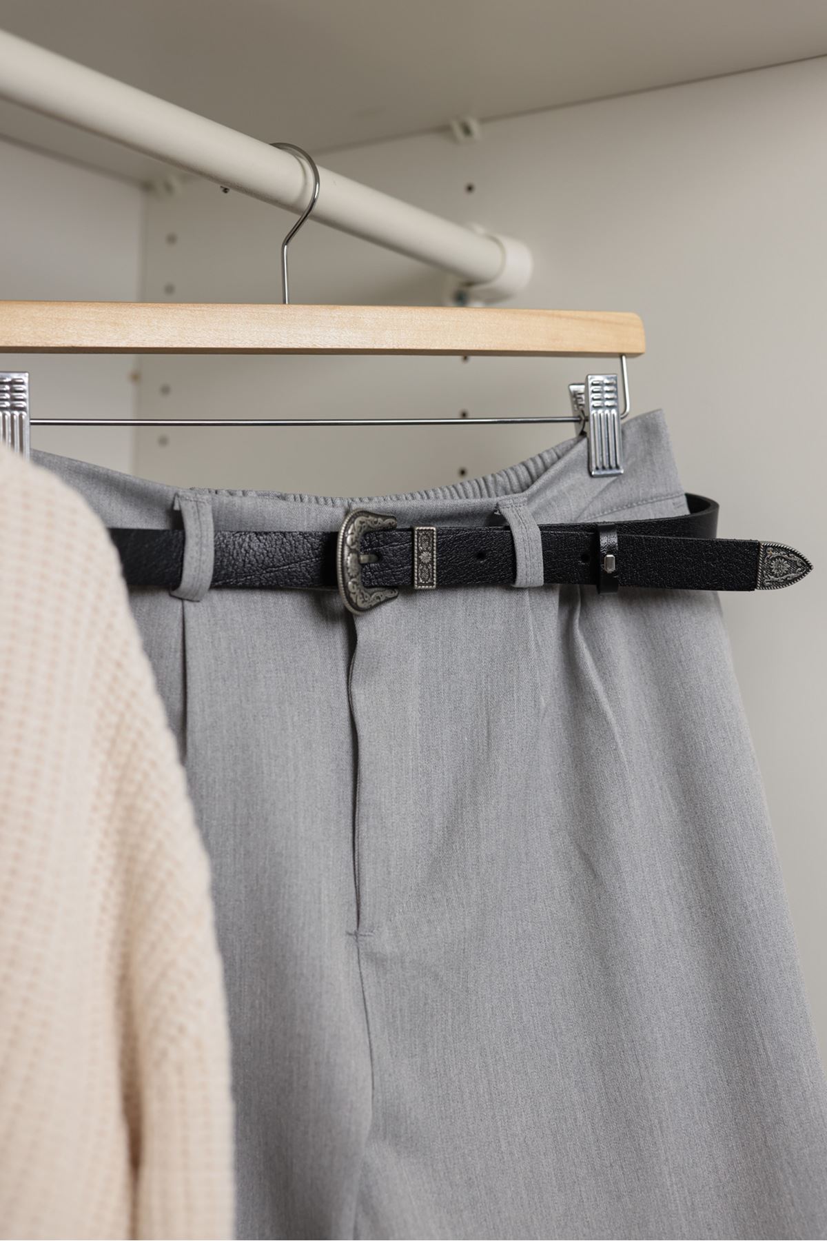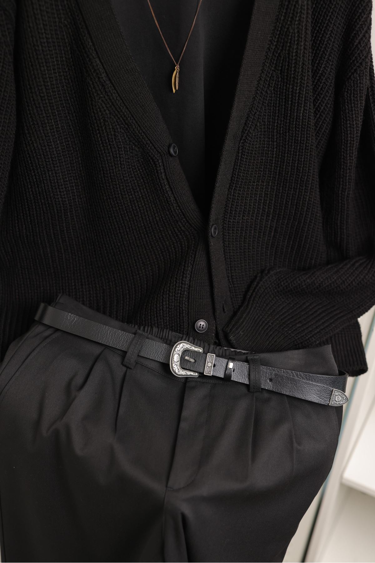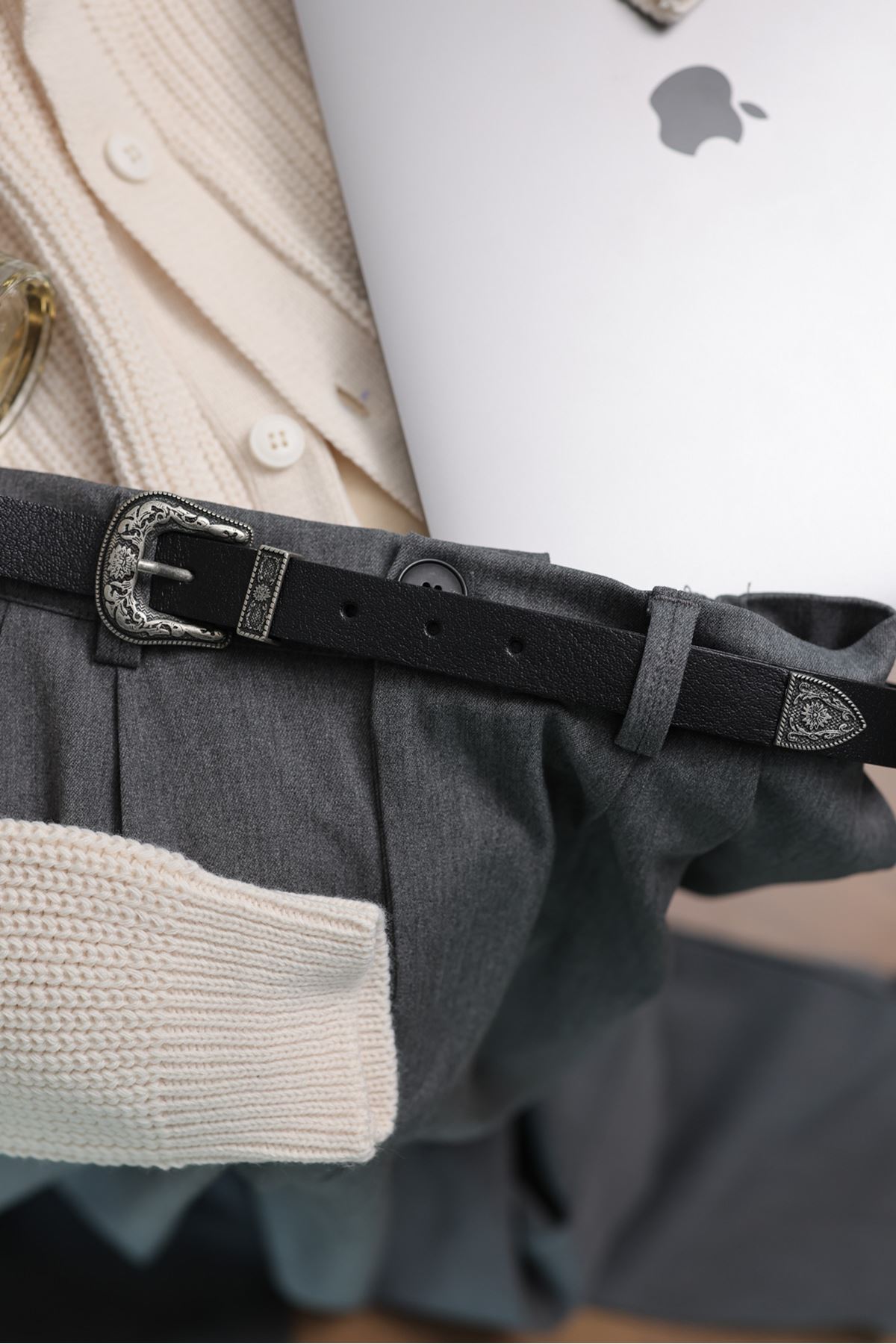 Gri işlemeli tokası ve zarif köprü detayıyla dikkat çeken bu kemer, sofistike bir dokunuş sunuyor. Siyah deri kayışı sayesinde hem dayanıklı hem de şık bir kullanım sağlıyor. Ucu özel tasarımıyla kombininizi tamamlayan ince bir ayrıntı sunuyor. Klasik ve modern stillere uyum sağlayarak her gardırobun vazgeçilmezi oluyor.